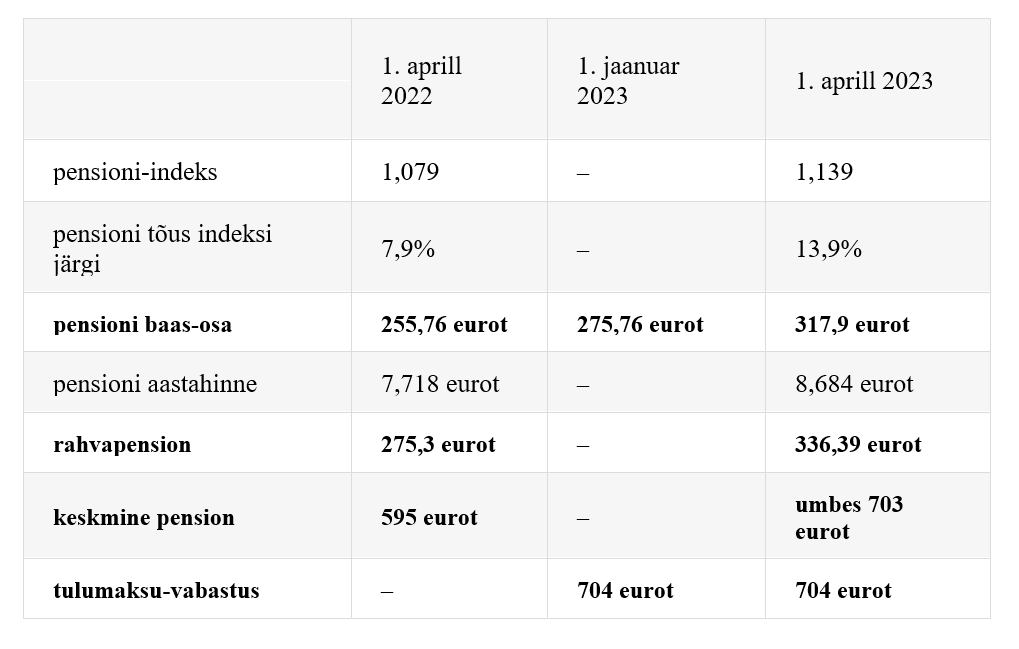 aprillist tõuseb keskmine pension 700 euroni.