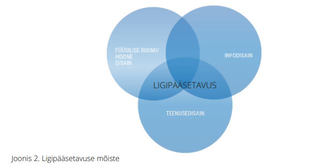 Ligipääsetavuse all mõistetakse kogu elanikkonna kaasatust elu- ja infokeskkonda, mis tähendab, et kõikidele inimestele olenemata nende vanusest või tervislikust seisundist on tagatud võrdsed võimalused ühiskonnaelust osa võtta. Ligipääsetavuse all võib mõista füüsilise ruumi, info ja teenuste ligipääsetavust (joonis 2).