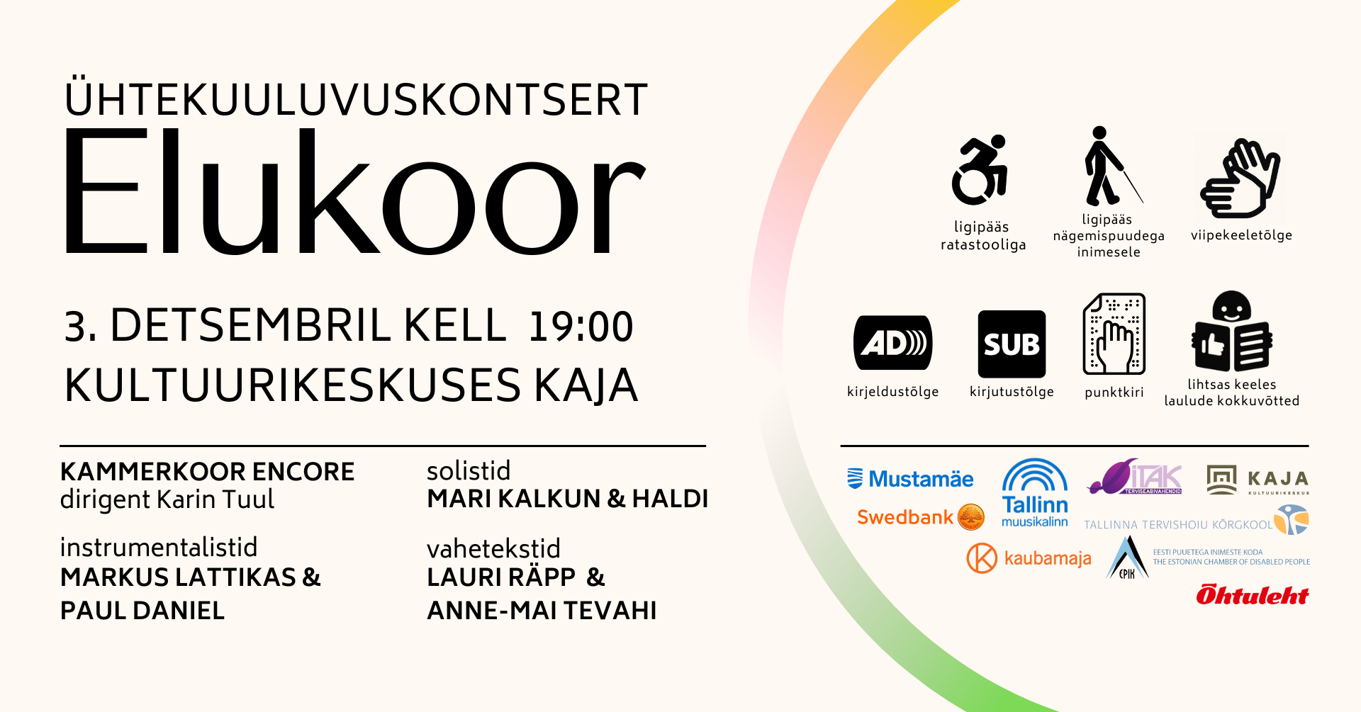 Kammerkoor Encore ja Eesti Puuetega Inimeste Koda kutsuvad ühtekuuluvuskontserdile “Elukoor”.
