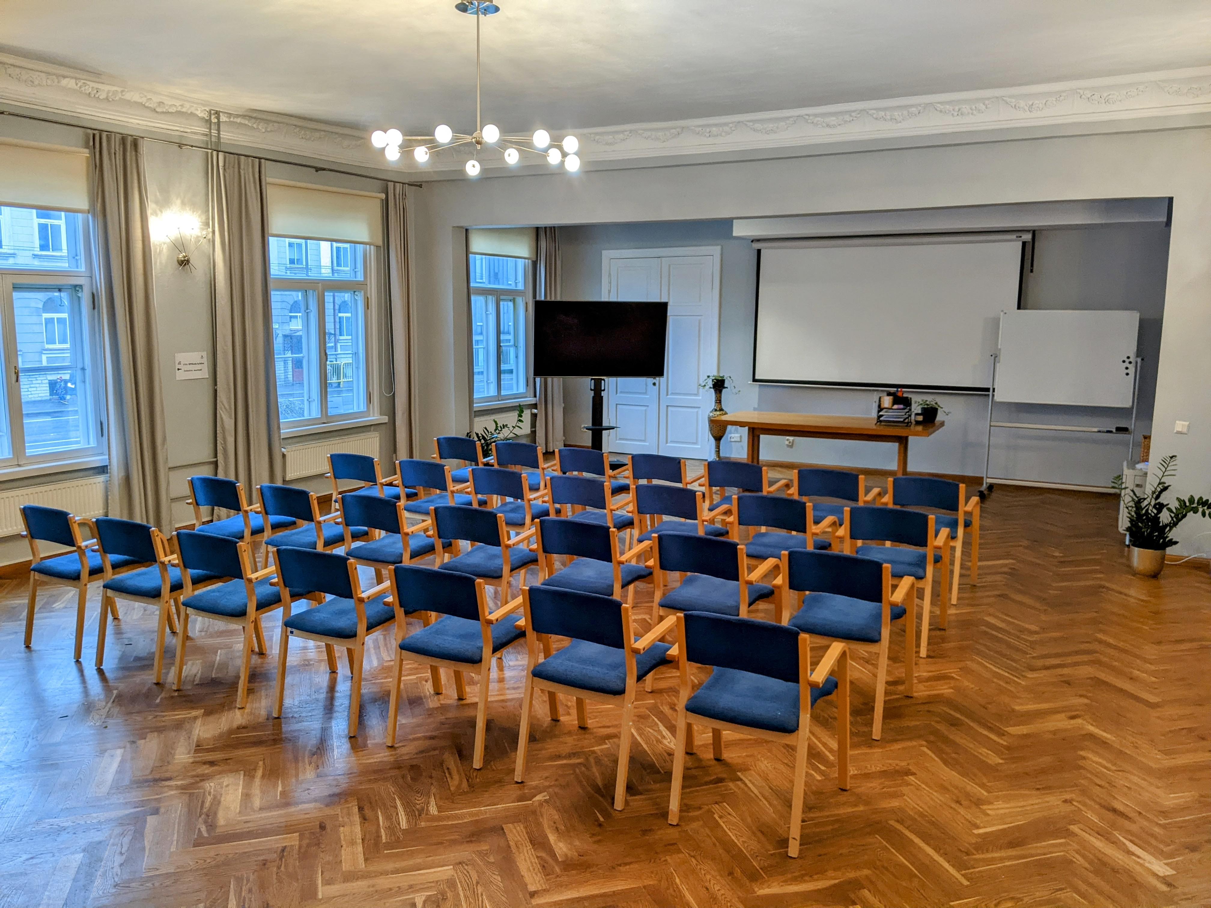 Suurde saali (84,0 m²) mahub olenevalt mööbli paigutusest kuni 50 inimest.